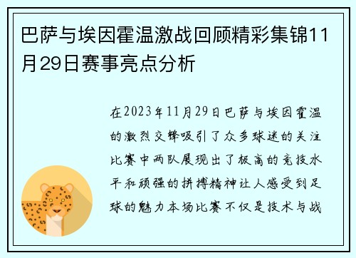 巴萨与埃因霍温激战回顾精彩集锦11月29日赛事亮点分析